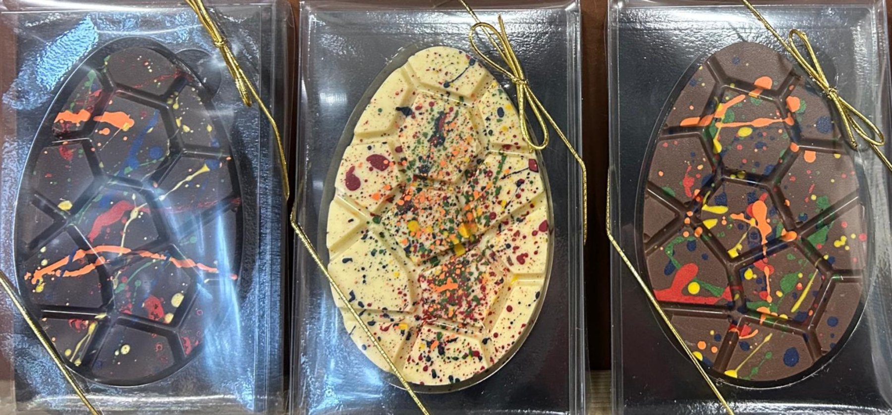 Our Flat Eggs are the quirky cousins of the traditional Easter egg — no shells, no fuss, just slabs of seriously good chocolate splattered with cocoa butter colours. Perfect for gifting, sharing (if you’re feeling generous), or keeping all to yourself. Go on… pick your favourite!