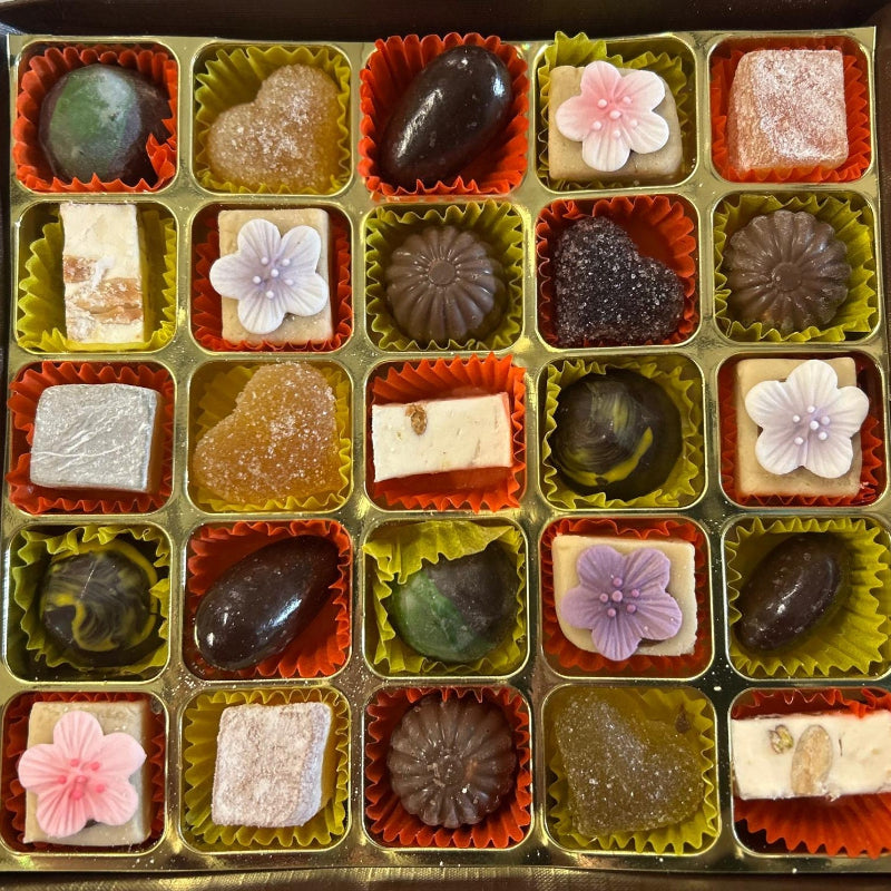 Sugar, ALMONDS (28%), glucose syrup, honey, PISTACHIOS, EGG white, atural vanilla flavour, unleavened bread (water, starch, olive oil)