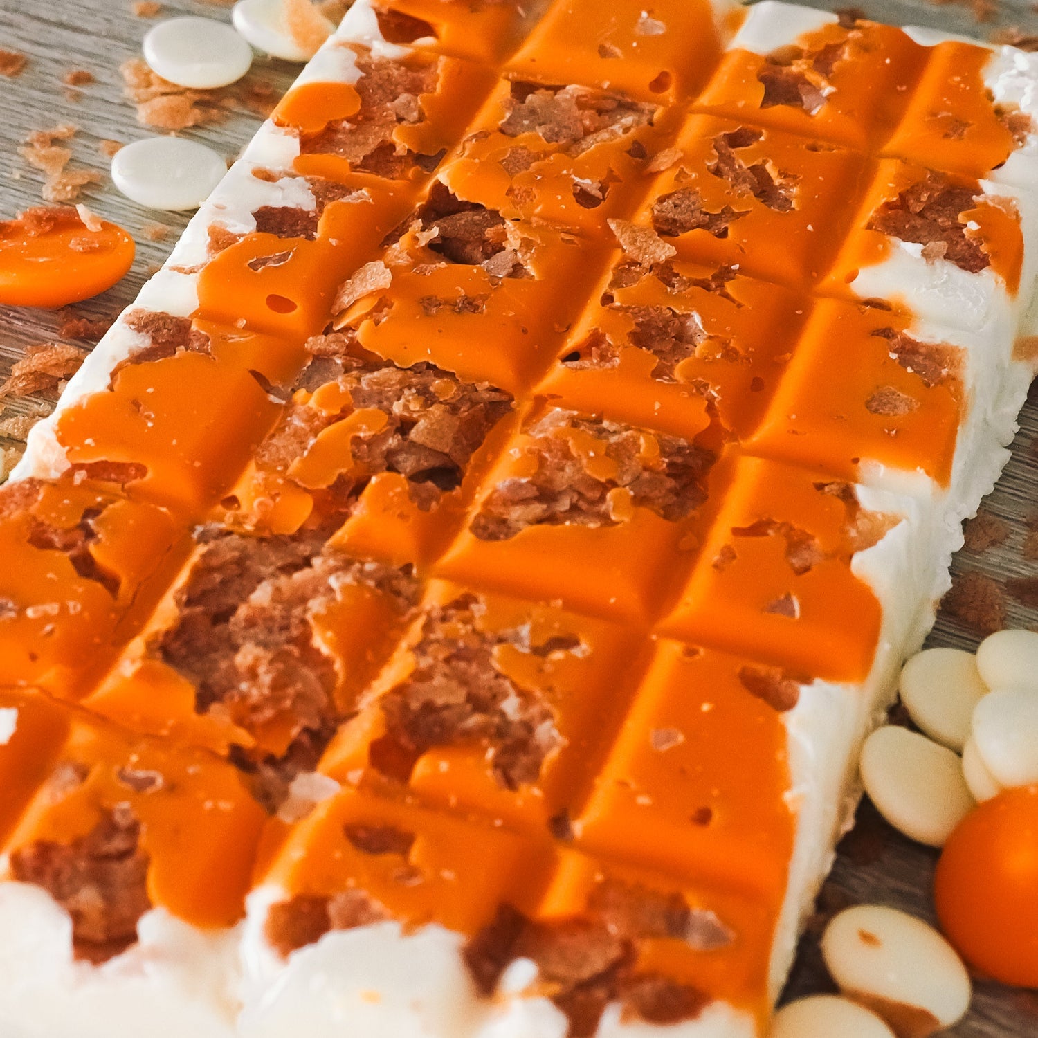 - Orange Wafer: Crispy wafer in white and orange chocolate